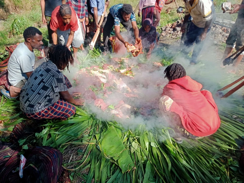 Tradisi bakar batu merupakan warisan budaya Papua yang mengajarkan gotong royong, syukuran, dan solidaritas antarkampung. Lebih dari sekadar kuliner, tradisi ini menjadi simbol kebersamaan yang dijaga dari generasi ke generasi.