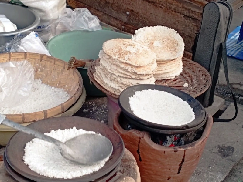 Singkong diparut dengan tangan menggunakan parutan kasar, kemudian diperas dengan alat tradisional bernama pangepeq untuk menghilangkan kandungan racun. Ampas singkong dicampur dengan kelapa parut, kemudian dipanggang di atas panjepangang, piring tanah liat berbentuk bundar, hingga menjadi roti pipih bulat yang gurih.