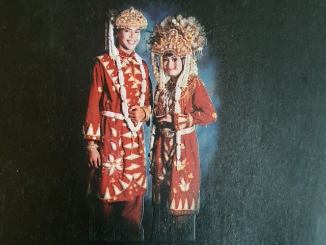 Selain mahkota, pengantin perempuan juga mengenakan kain tenun cual yang menjadi ciri khas Bangka Belitung. Kain ini melambangkan ketekunan dan kearifan lokal yang diwariskan secara turun-temurun (Detik.com, 2023).