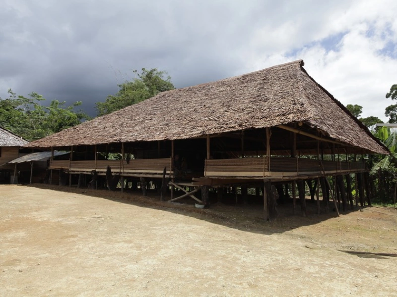 Rumah Baileo – Rumah adat utama Suku Huaulu, suku asli yang mendiami bagian utara Pulau Seram, tepat di kaki Gunung Binaiya. Bangunan ini menjadi simbol identitas dan sejarah panjang komunitas Huaulu, sekaligus menegaskan keberadaan budaya yang diwariskan turun-temurun.