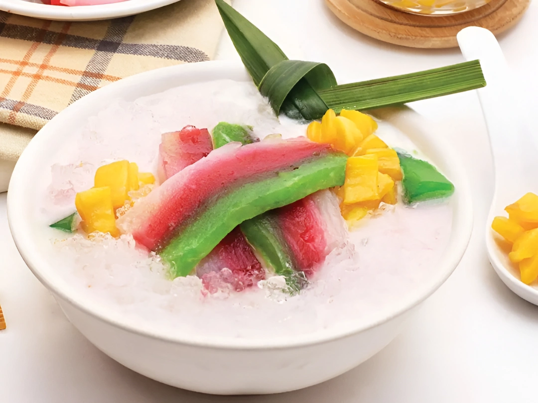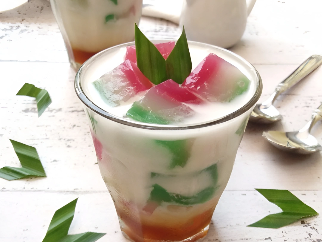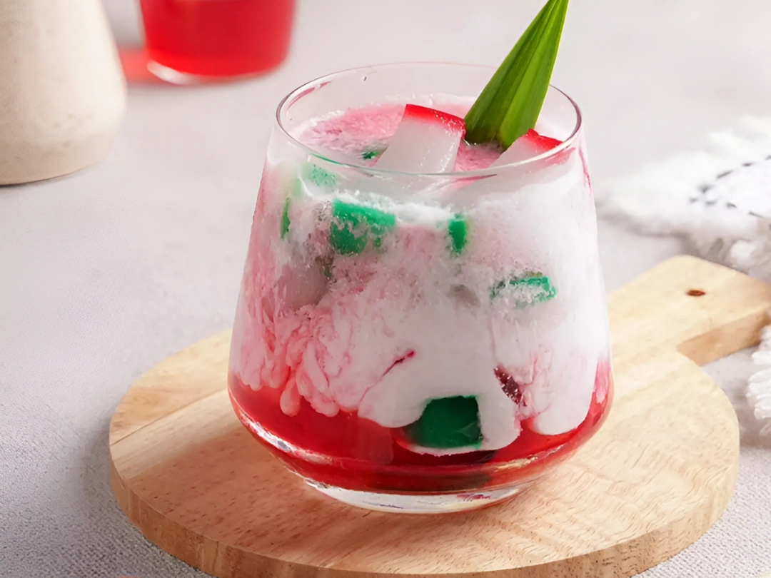 Minuman ini memiliki warna-warni menarik yang tidak hanya memanjakan lidah tetapi juga mata. Warna putih berasal dari santan, merah muda dari pewarna makanan, dan hijau dari daun pandan. Biasanya disajikan dalam mangkuk dengan tambahan gula merah, sirup, santan, dan es batu untuk sensasi segar.