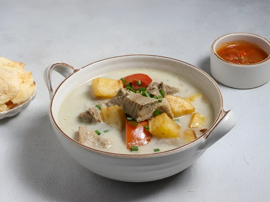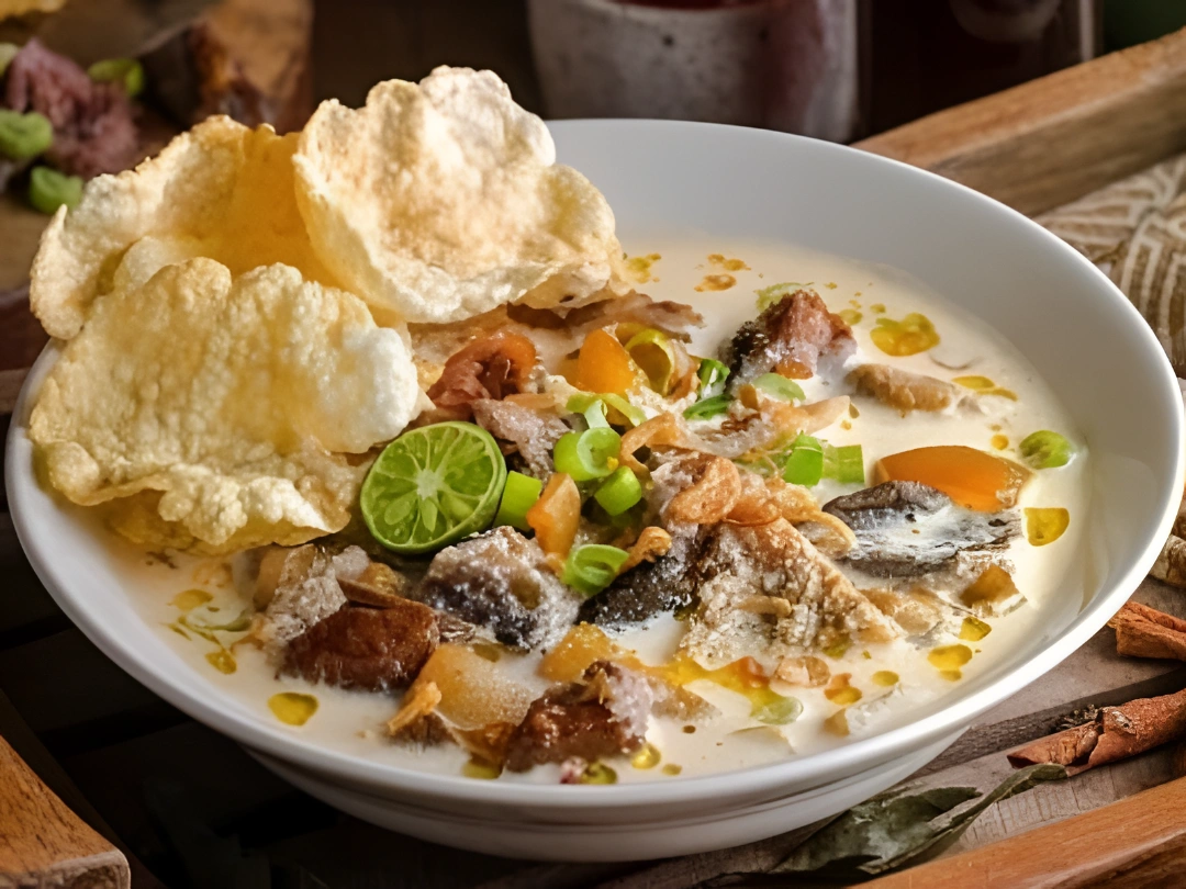 Daging dan jeroan sapi direbus hingga empuk, kemudian dicampur dengan bumbu rempah dan kuah santan. Soto ini disajikan hangat, biasanya dilengkapi potongan tomat, kentang goreng, dan emping. Hidangan ini mudah dinikmati kapan saja dan menjadi favorit warga Jakarta maupun wisatawan.