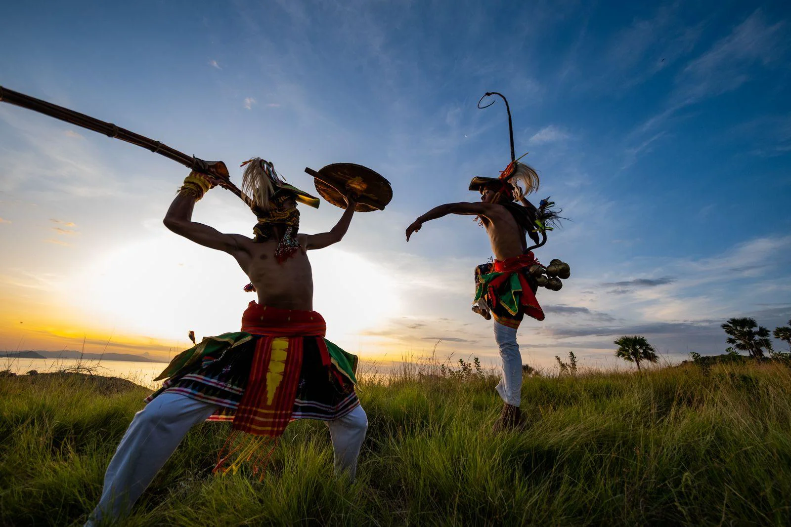 Tarian ini terkenal karena menampilkan duel antara dua pria yang saling beradu cambuk dan menangkis serangan dengan perisai. Meski terlihat seperti pertarungan, Tari Caci sebenarnya merupakan bagian dari tradisi adat yang mengandung nilai persaudaraan, sportivitas, dan rasa hormat antar masyarakat Manggarai.