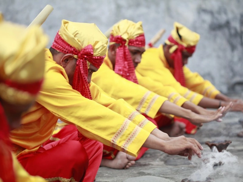 Penari akan memulai tarian setelah dimasuki roh halus. Tanpa alas kaki, mereka melangkah masuk ke arena dengan tubuh yang terasa berat oleh pengaruh jin. Penari wanita membawa wadah berisi kemenyan atau arang dan daun palem kering sebagai pelindung dari roh jahat.