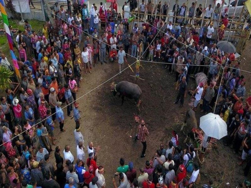 - Hari 3: Mangajan (tarian sakral), pengorbanan kerbau/sapi, serta ritual penyucian.