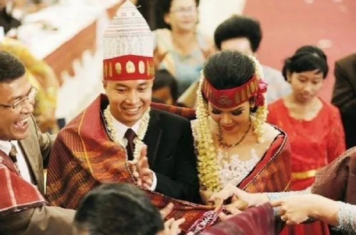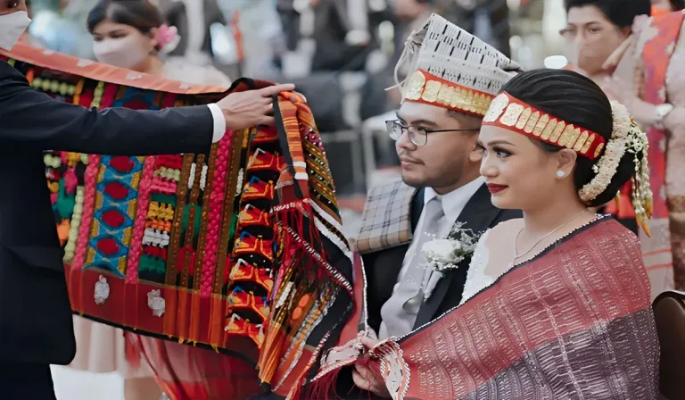 Tradisi Mangulosi Batak ditampilkan dalam momen pemberian ulos, simbol kasih sayang, doa, dan perlindungan bagi pengantin. Sumber gambar: WeddingMarket