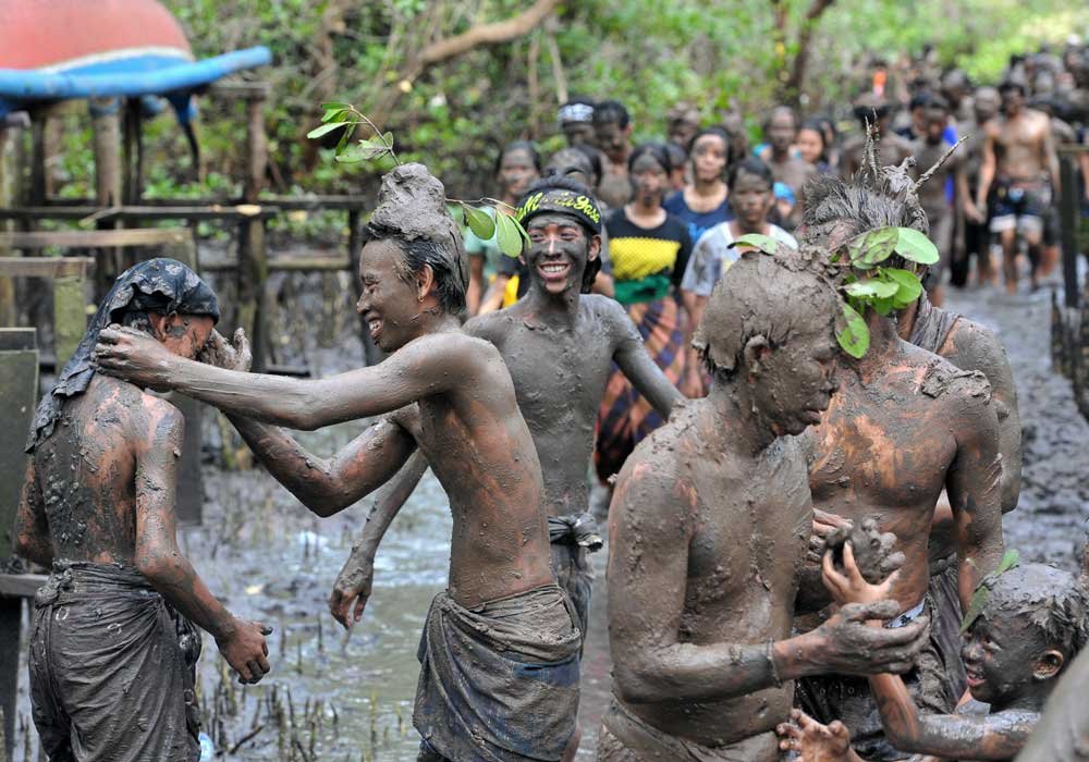 Setelah tubuh dilumuri lumpur, warga berjalan menuju pantai untuk membersihkan diri. Tahapan ini dimaknai sebagai proses penyucian sekaligus awal baru dalam kehidupan spiritual masyarakat.