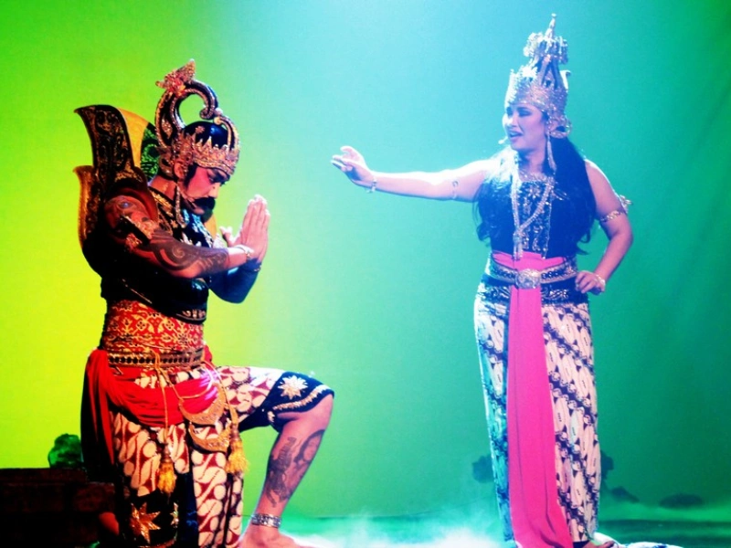 Cerita yang diangkat biasanya berasal dari epik Mahabharata dan Ramayana. Tokoh Punakawan muncul sebagai pencair suasana, menggambarkan masyarakat biasa (kawula alit) dan abdi dalem. Setiap jeda cerita juga menampilkan tari kolosal atau tari individu yang menambah keindahan pertunjukan.